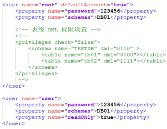 server.xml配置文件包含了mycat的系统配置信息,主要有两个重要标签:system、user